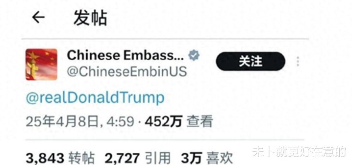 2025年4月8日凌晨,中国驻美大使馆官网上出现一条令人费解的动态:仅仅@了特朗普的个人账号,页面上空空如也,没有一个字。这,便是震惊全球的“无字天书”事件。没有华丽辞藻,没有激烈言辞,只有这无声的@,却仿佛蕴含着千言万语,传递出中国面对贸易战的坚定决心和深沉力量。 它迅速引爆网络,阅读量突破百万,评论区更是炸开了锅,各种解读层出不穷。这究竟是什么样的策略?又预示着怎样的未来?